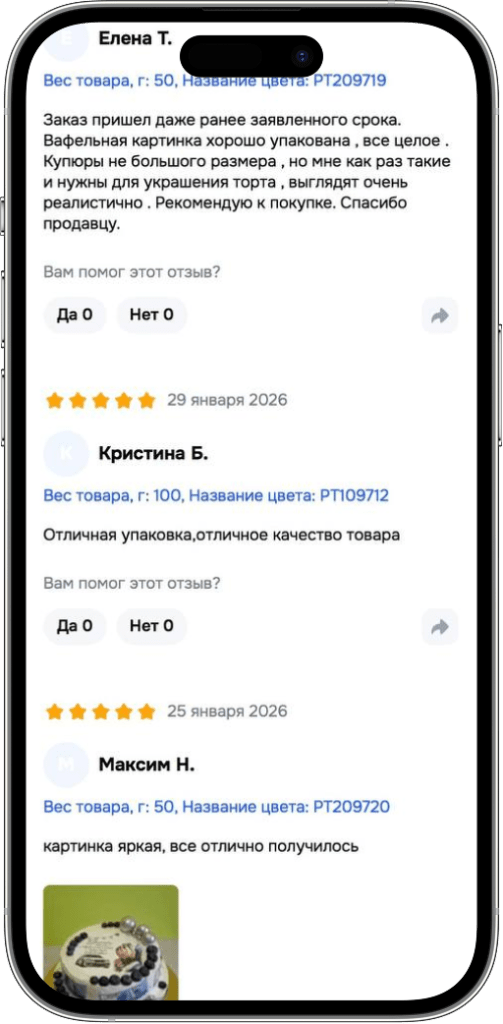Мы занимаем 1 место по продажам на ВБ и ОЗОН в категории «Декор для выпечки». Нас любят и узнают